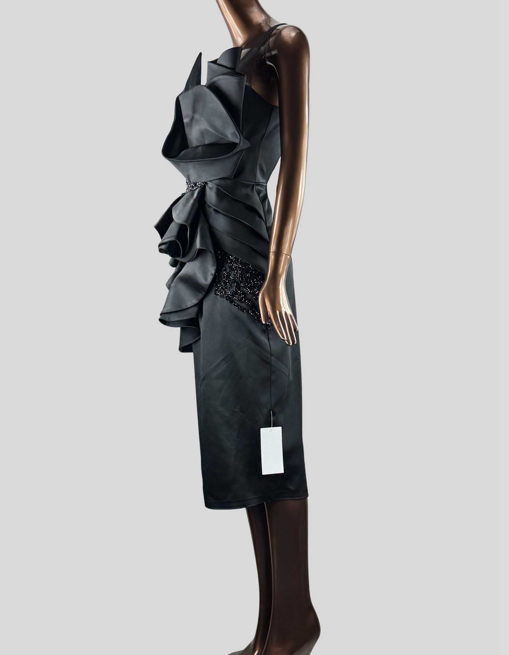 Description : ANITABEL DIVALUKKY Cocktail Dress w/ Tags. Soft smooth duchess satin fabric, peplum details, structured details reinforced to help retain shape, a combination of silver embroidery and crystal bead details, penciled silhouette. This item was purchased for the production of MAYFAIR WITCHES S1. CONDITION: Excellent. New with Tags. SHIPPING & RETURNS: This item is final sale and is not returnable.