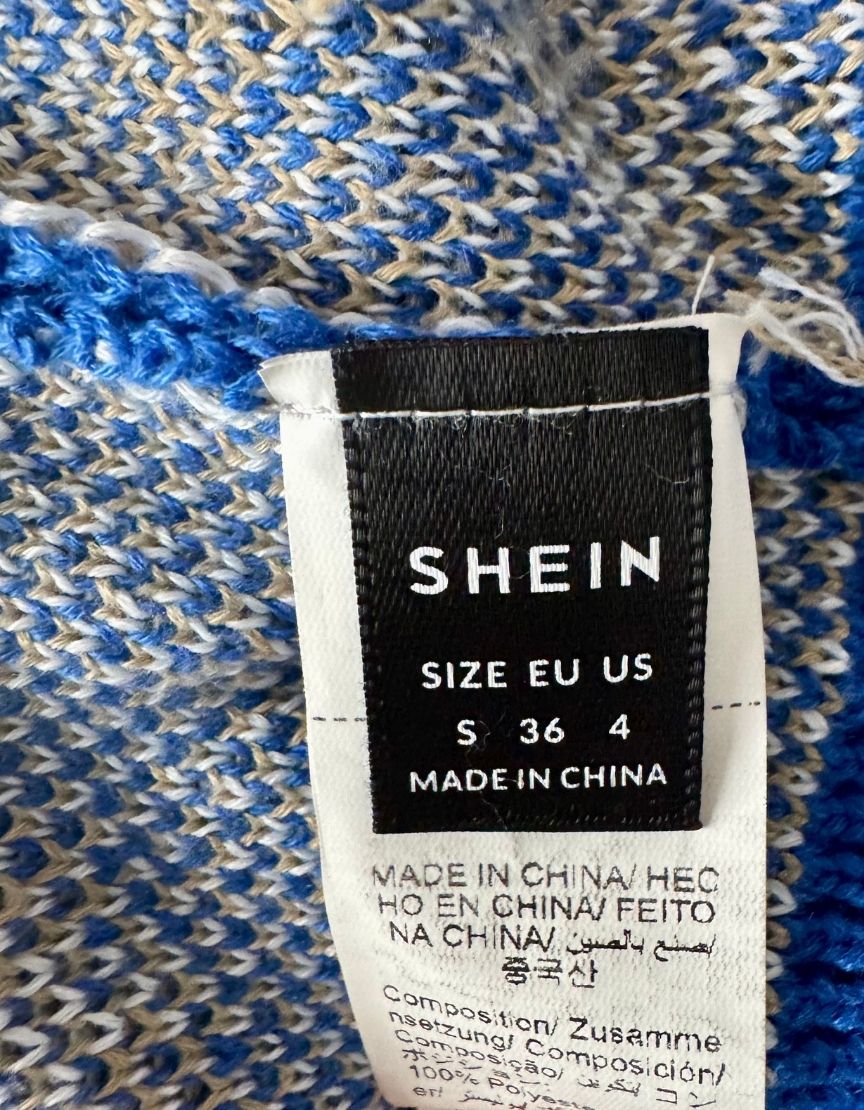Description : Authentic screen-worn SHEIN blue holiday cardigan featuring festive reindeer and gingerbread cookie pattern with snowflakes. V-neck button-front design with ribbed trim at cuffs and hem. CONDITION: Excellent. Like new. Purchased for Hallmark's CHRISTMAS ABOVE THE CLOUDS movie.