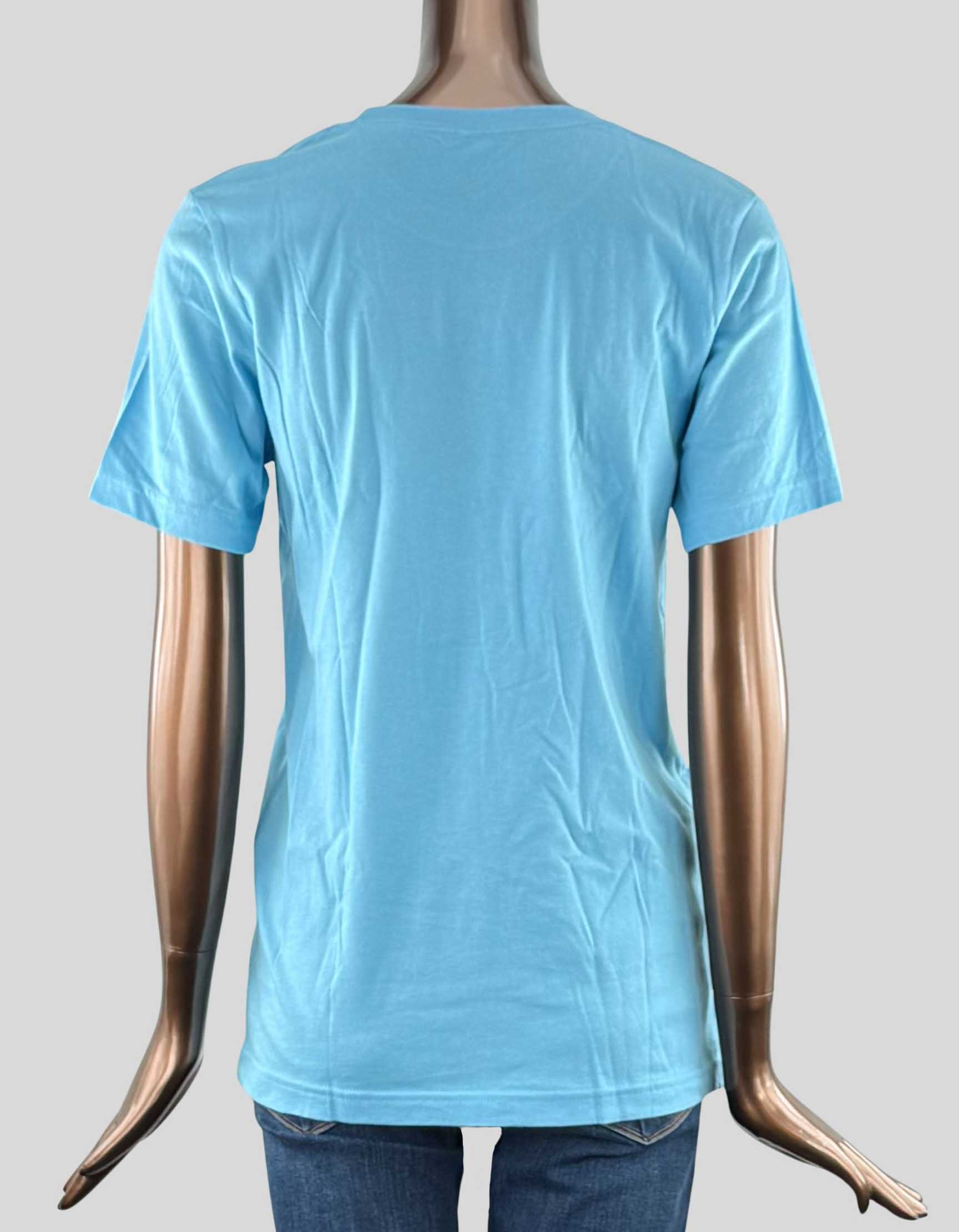 Description : GILDAN 'Ruffled Feathers' T-shirt in blue. Crewneck. Short sleeve. CONDITION: Excellent. Like new. Made for Adventures in Love & Birding movie.