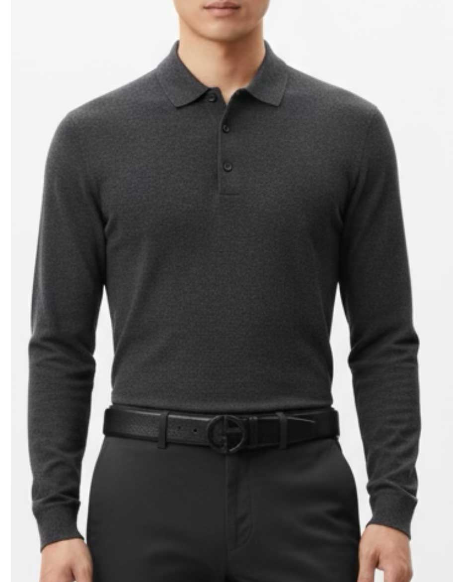 Description : GIORGIO ARMANI belt in black pebbled calfskin leather featuring the iconic round GA logo buckle. The buckle is covered in matching black pebbled leather for a refined tonal effect, with the interlocking GA monogram cut-out revealing the metal beneath. Subtle embossed GA logos throughout the strap add understated brand recognition. CONDITION: Pristine. New with tags. Purchased for AMC's PARISH TV series wardrobe.