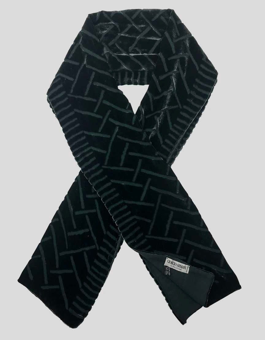 Description : ARMANI COLLEZIONI dark green evening dress with green velvet flower pattern throughout. Accompanying neck scarf/wrap.Sleeveless and floor length with back slit. Concealed back zip closure. Lined. CONDITION: Gently Used. No visible signs of wear.