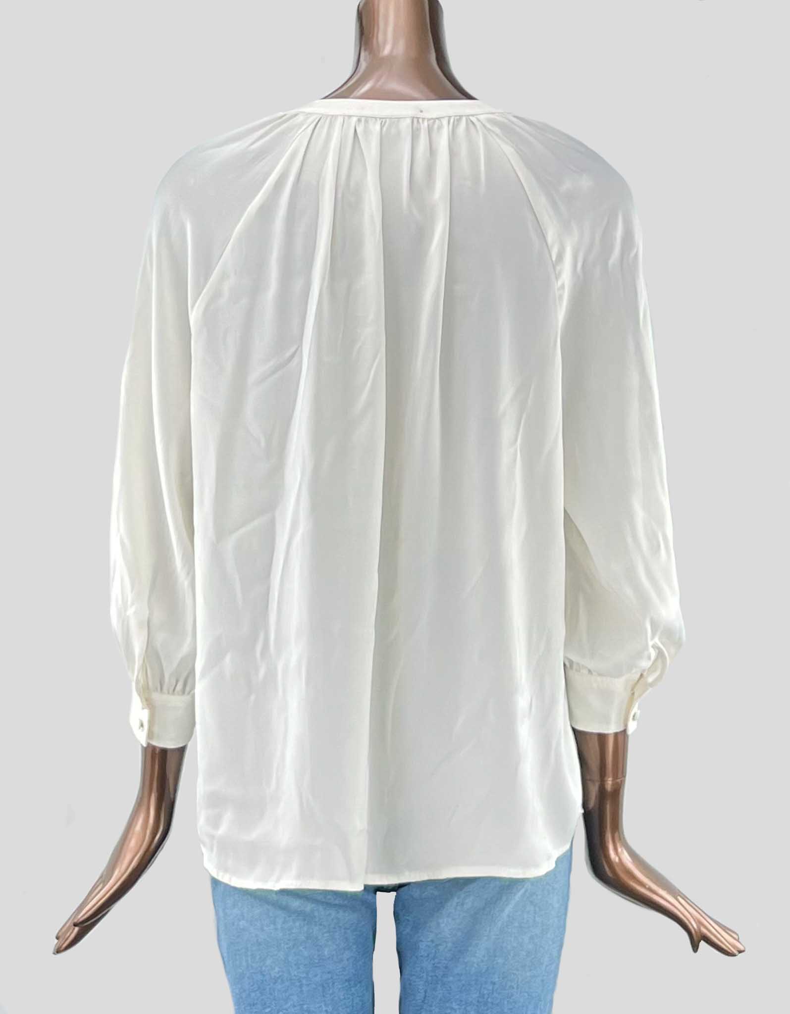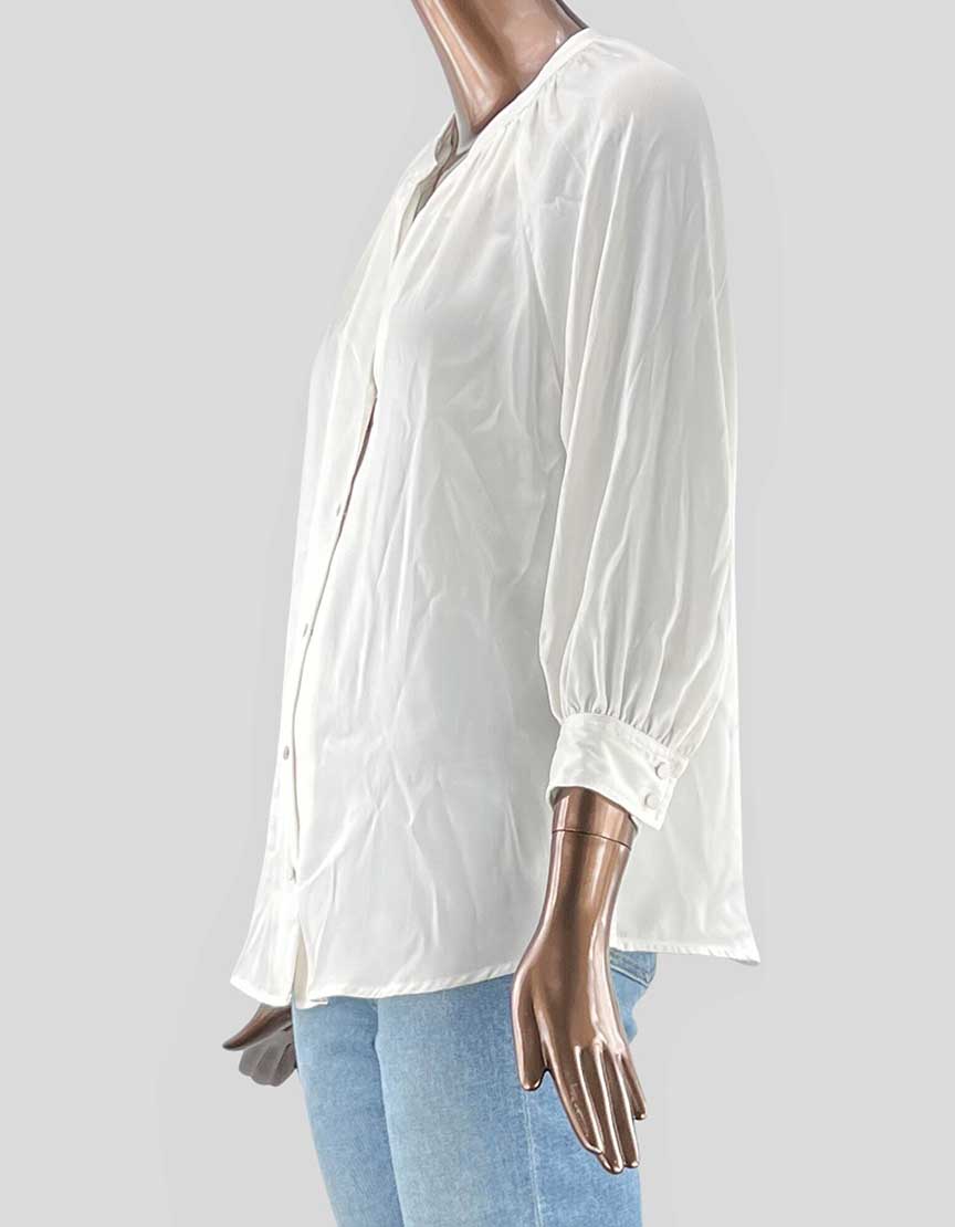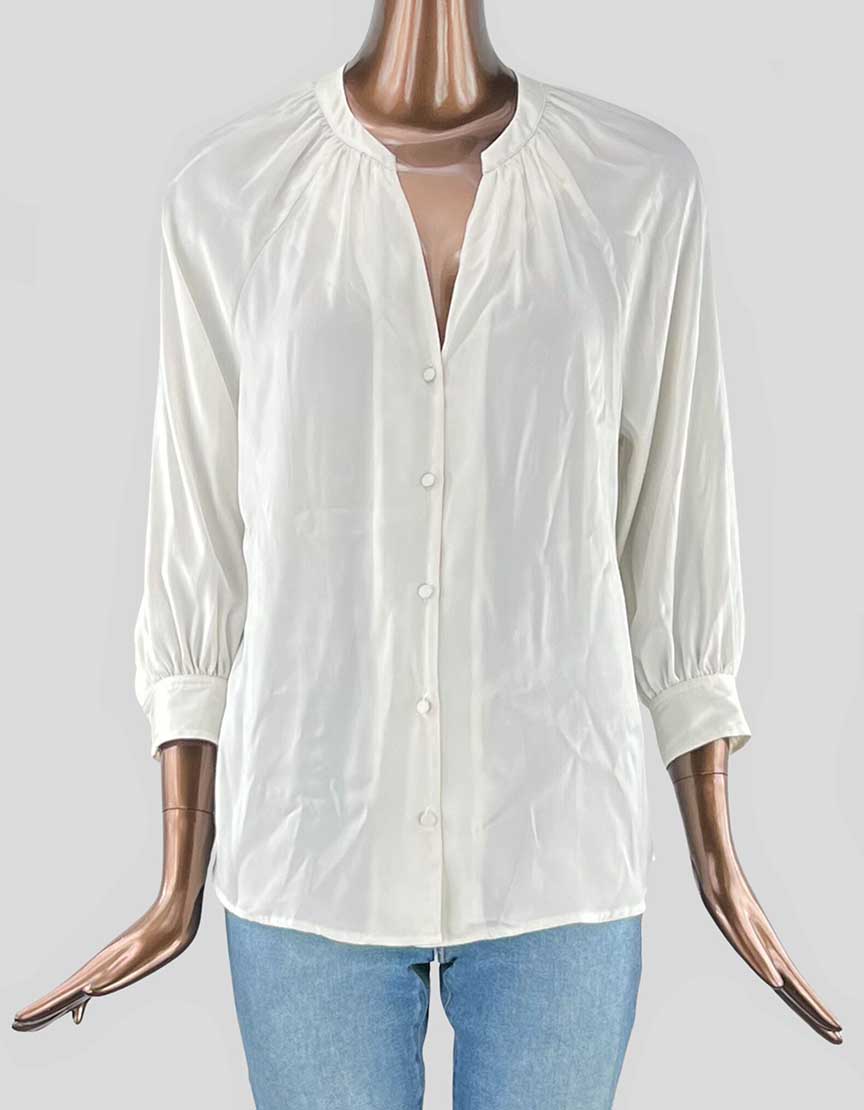 Description : J. Crew Drapey blouse featuring an easy button-down silhouette. Long sleeve with double button closure at wrist. Three-quarter length sleeves. Relaxed shoulders with an overall comfortable fit, featuring a smooth silky fabric. Condition: Excellent. Like new. Worn once.
