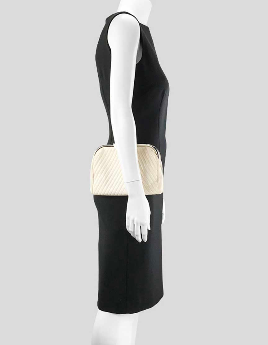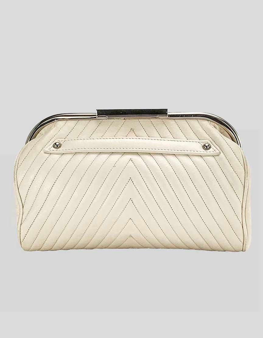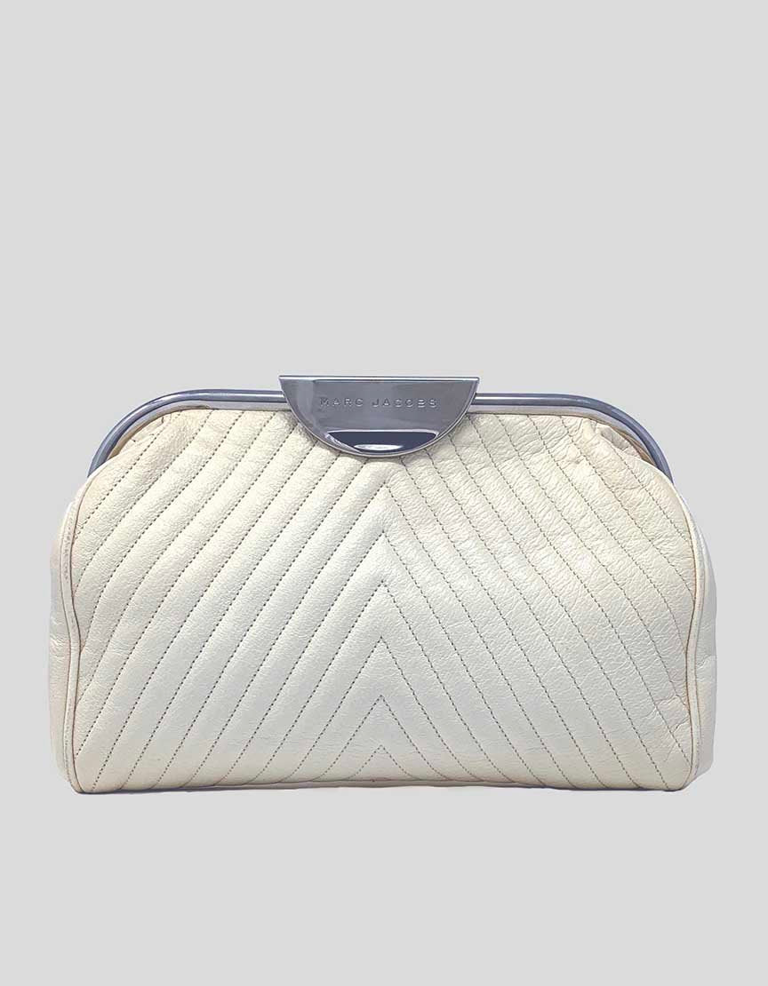 Marc Jacobs Ivory Chevron Frame Cutch Bag Quilted Leather And Silver Tone Hardware Single Flat Leather Handle At Back Suede Lining