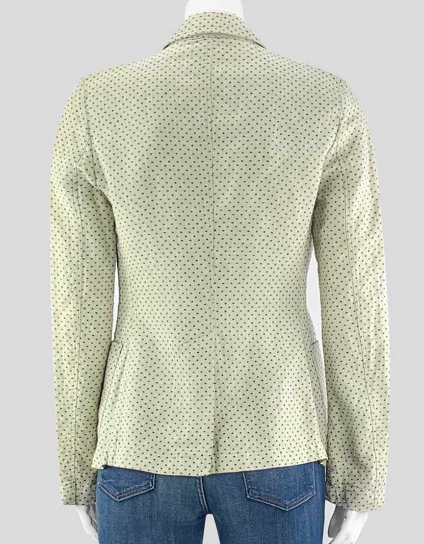 Description : MASSIMO ALBA light-weight blazer in light green fabric with a blue polka dot pattern. Condition: Like new. Front top button has a minor scratch.