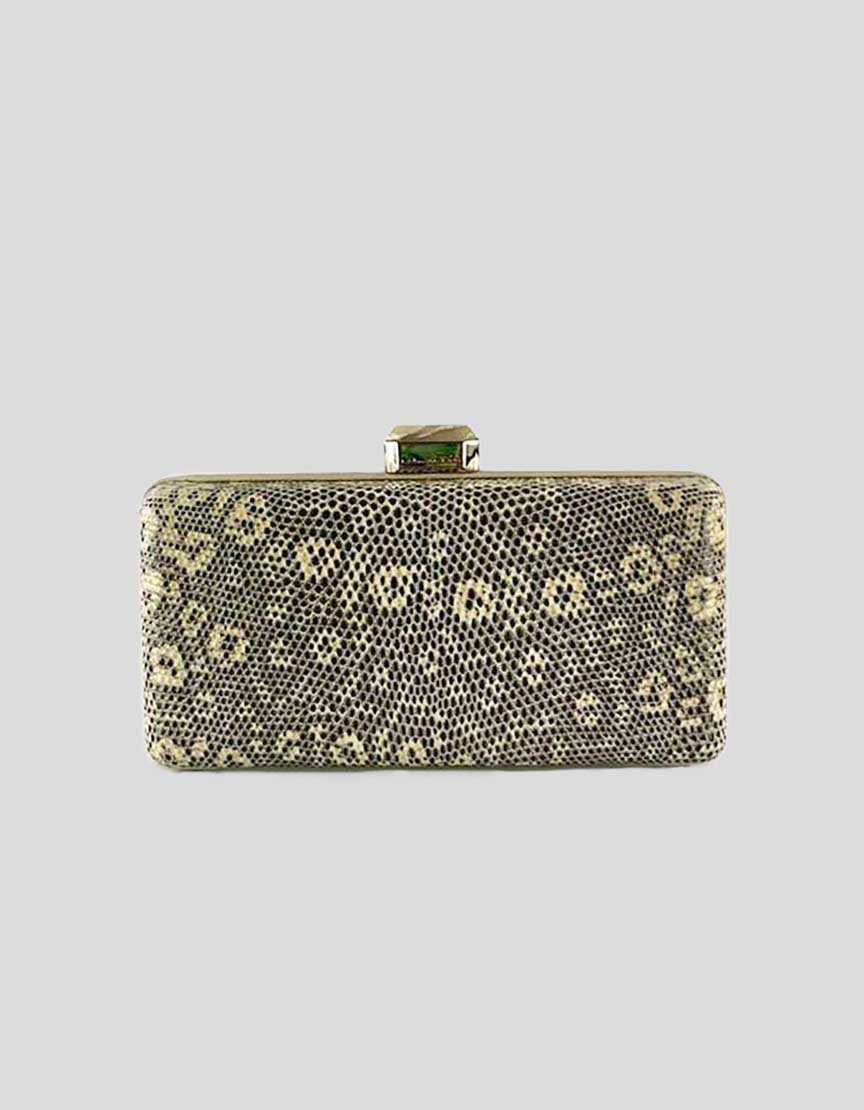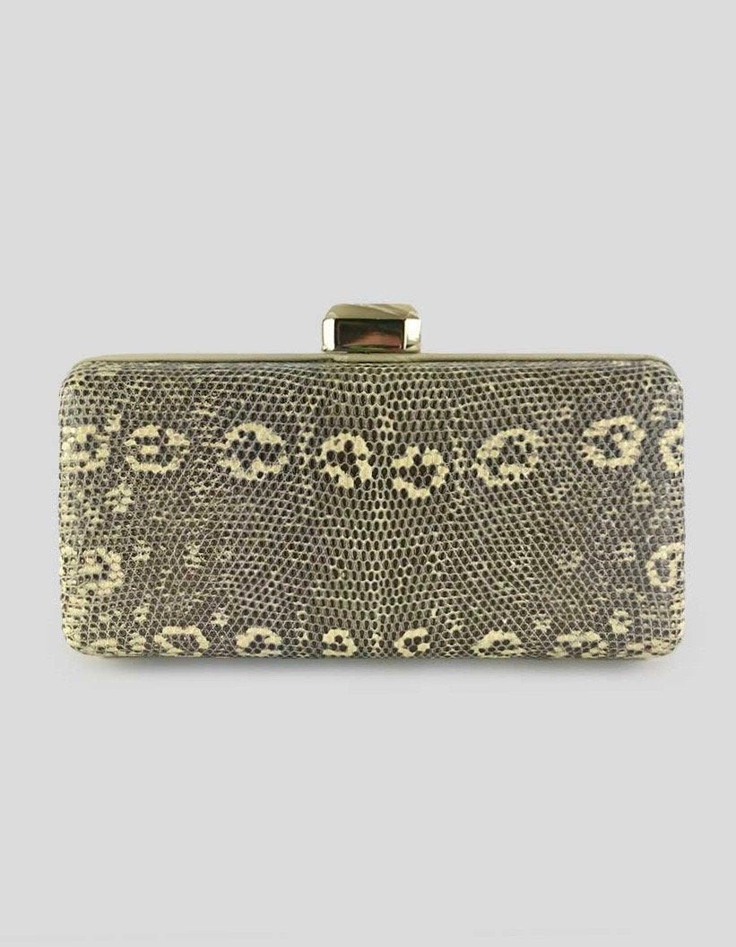 Oscar De La Renta Yellow And Black Snakeskin Evening Box Clutch