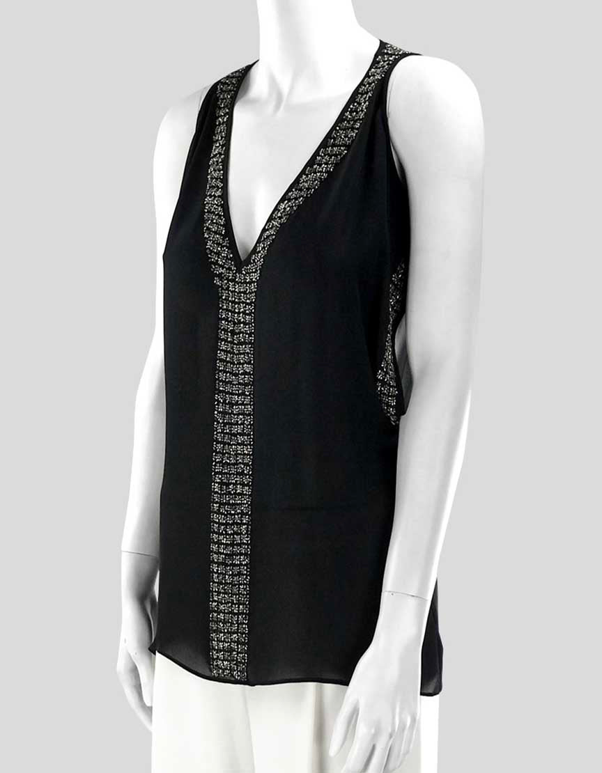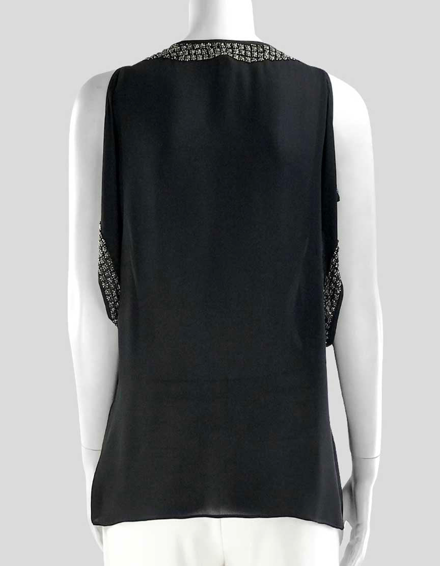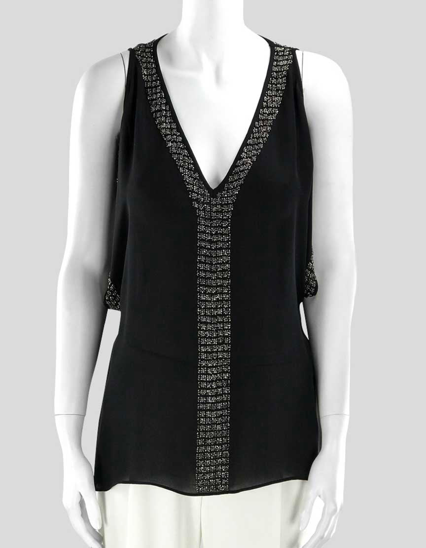 Parker Women's Open Shoulder Black Silk Evening Blouse Deep V-Neck And Metal Accents Size X-Small