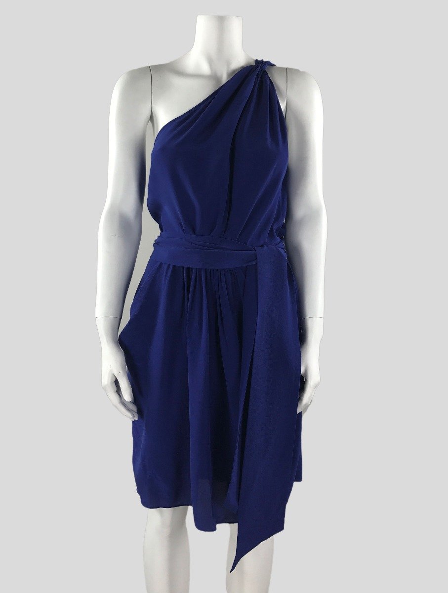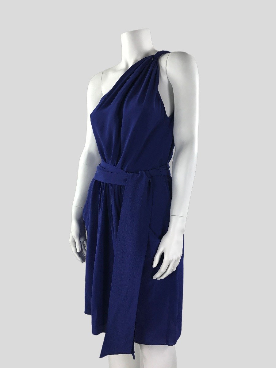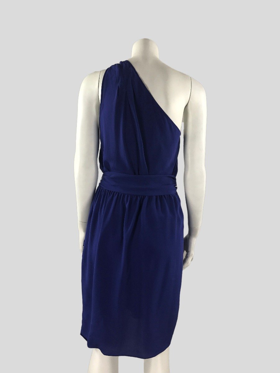 Description : Rebecca Taylor one-shoulder, belted dress with front gathering and side pockets. Silk fabric belt included. . Size: 6 US . Color: Blue . Material: 100% Silk . Condition: Like New. No visible signs of wear. . A minimum of 5% of the purchase price from this item will be donated to Children's Hospital Los Angeles. (CHLA)