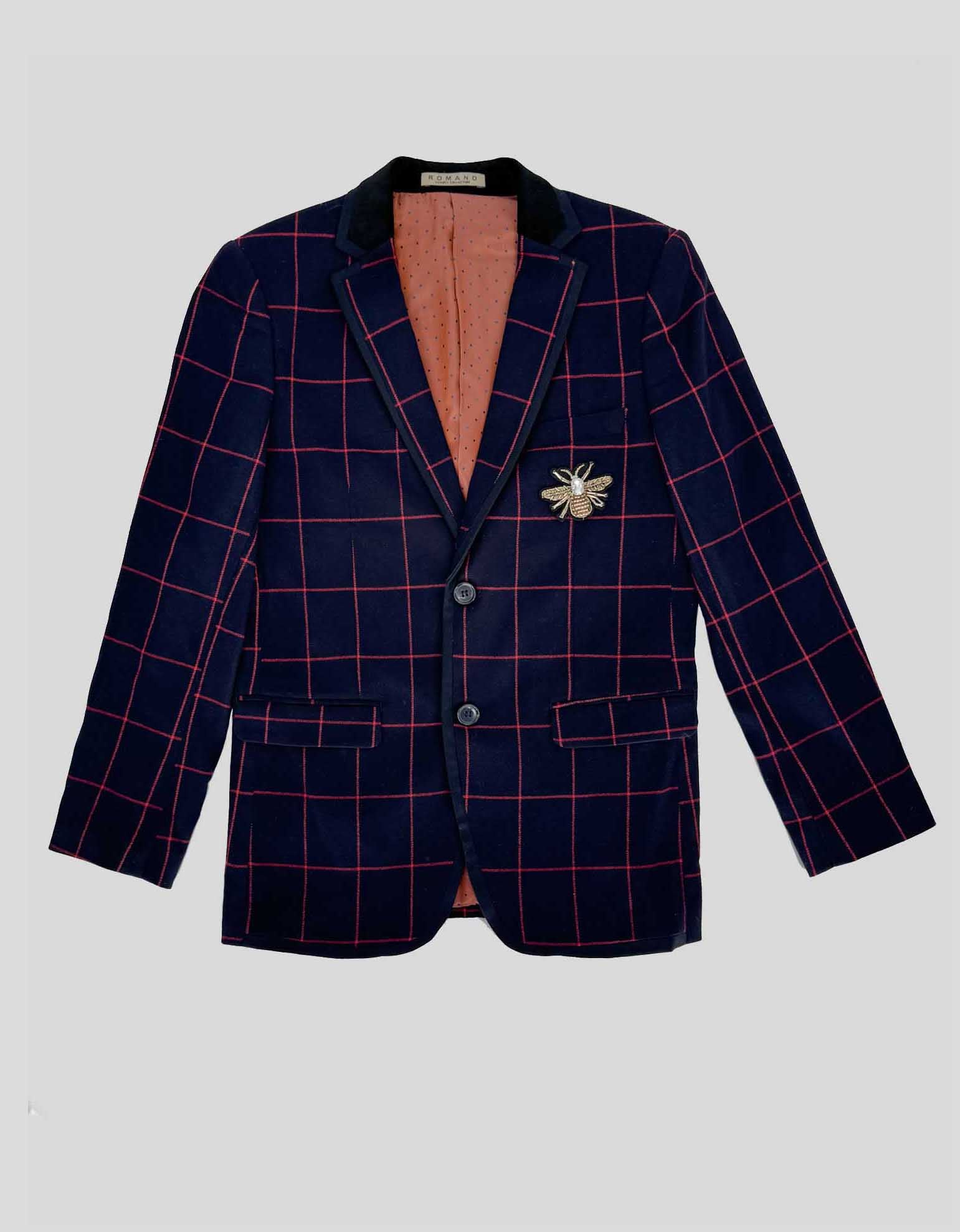 ROMANO LUXURY COLLECTION Navy Windowpane Blazer - 12Y