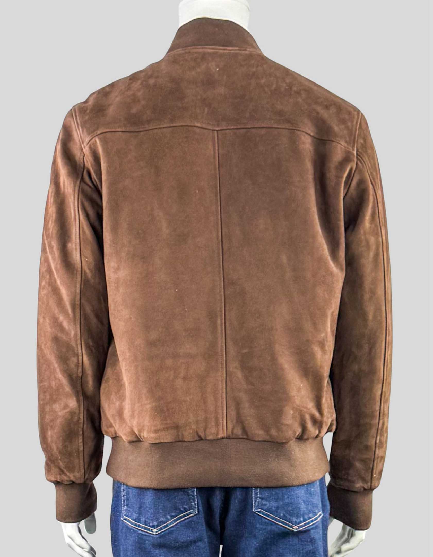 Description : SLATE & STONE 100% Suede Bomber with sturdy ribbed collar. Zipper front closure. Fully lined. Ribbed collar, cuffs and hem. CONDITION: Excellent. Like new. Worn once in HOME TURF movie.