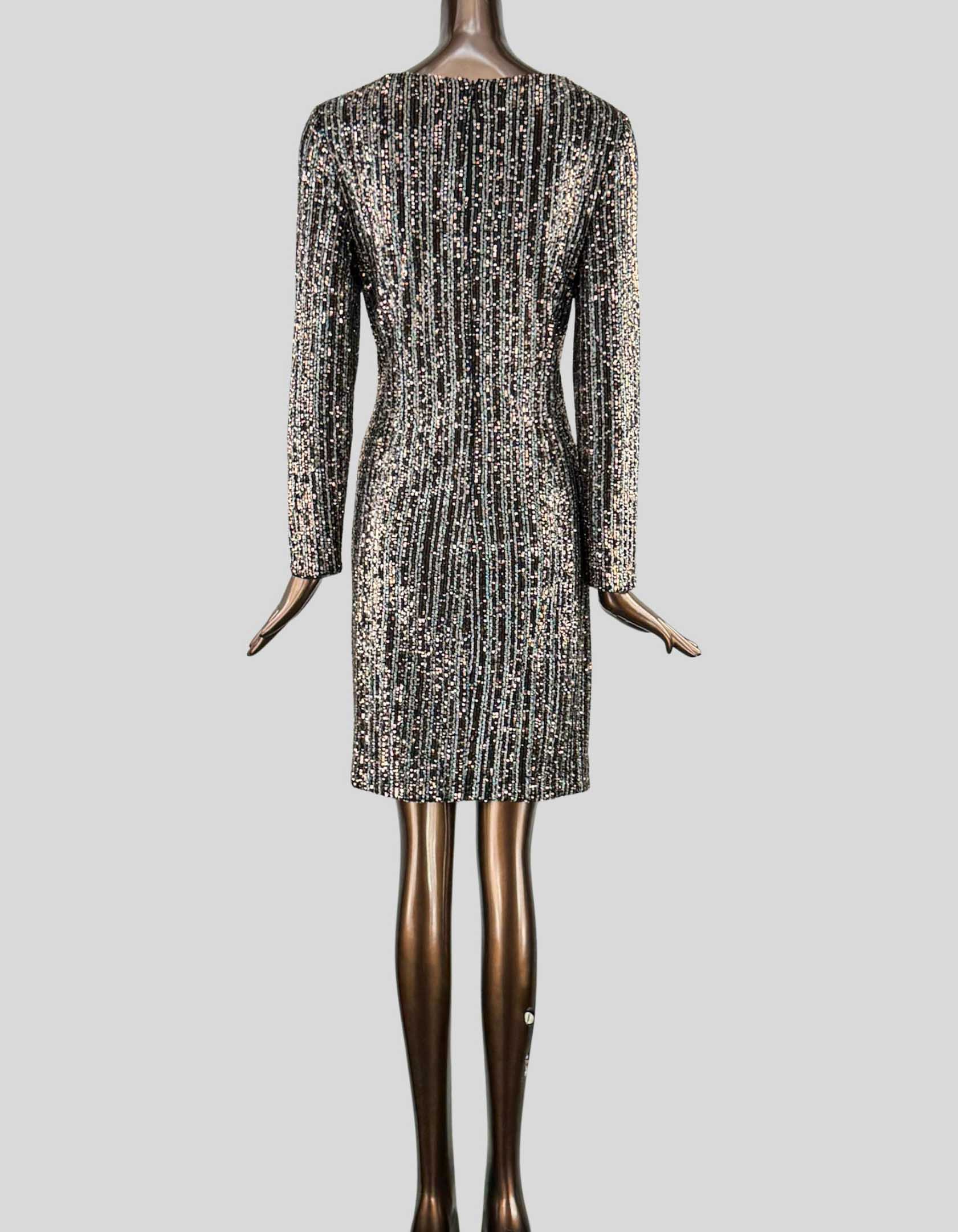 Description : VINCE CAMUTO Sequin Dress. Black, long sleeve, crew neck, back zipper closure, lined, with silver and bronze sequins. This item was purchased for the production of MAYFAIR WITCHES S1. CONDITION: Excellent. Like New. Worn once. SHIPPING & RETURNS: This item is final sale and is not returnable.