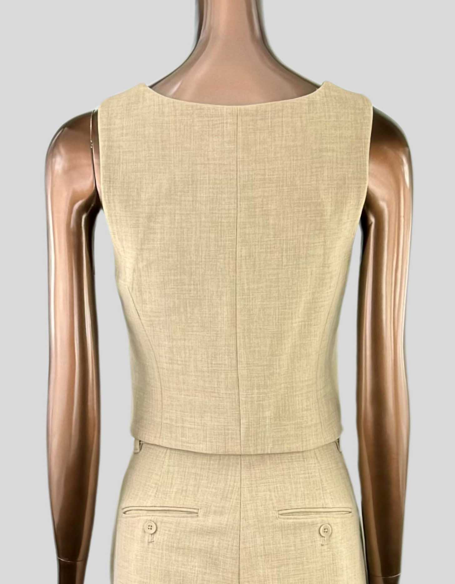 Description : WILFRED Desire Vest from Aritzia. Yes it can be worn as a top. Lined V-neck vest with princess seams, welt pockets and a front button closure. It’s made from Crepette — a drapey crepe fabric with a matte finish. CONDITION: Excellent. New without tags.