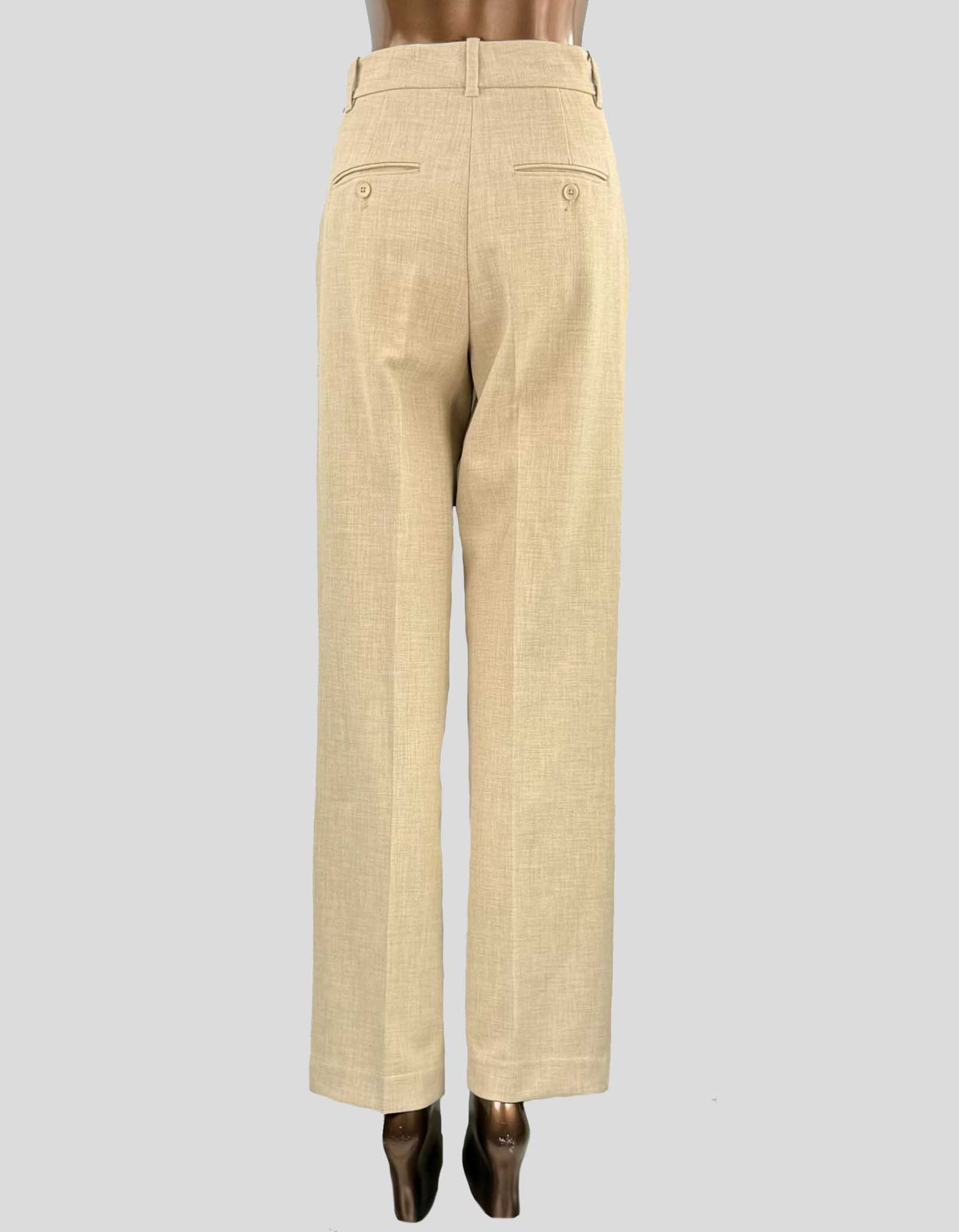 Description : WILFRED the Effortless Pant Trousers. Relaxed trousers, pleated front, high rise, relaxed fit, wide leg, front and back pockets, crepe fabric, light brown tan color, Aritzia brand, business casual. CONDITION: Excellent. New without Tags.